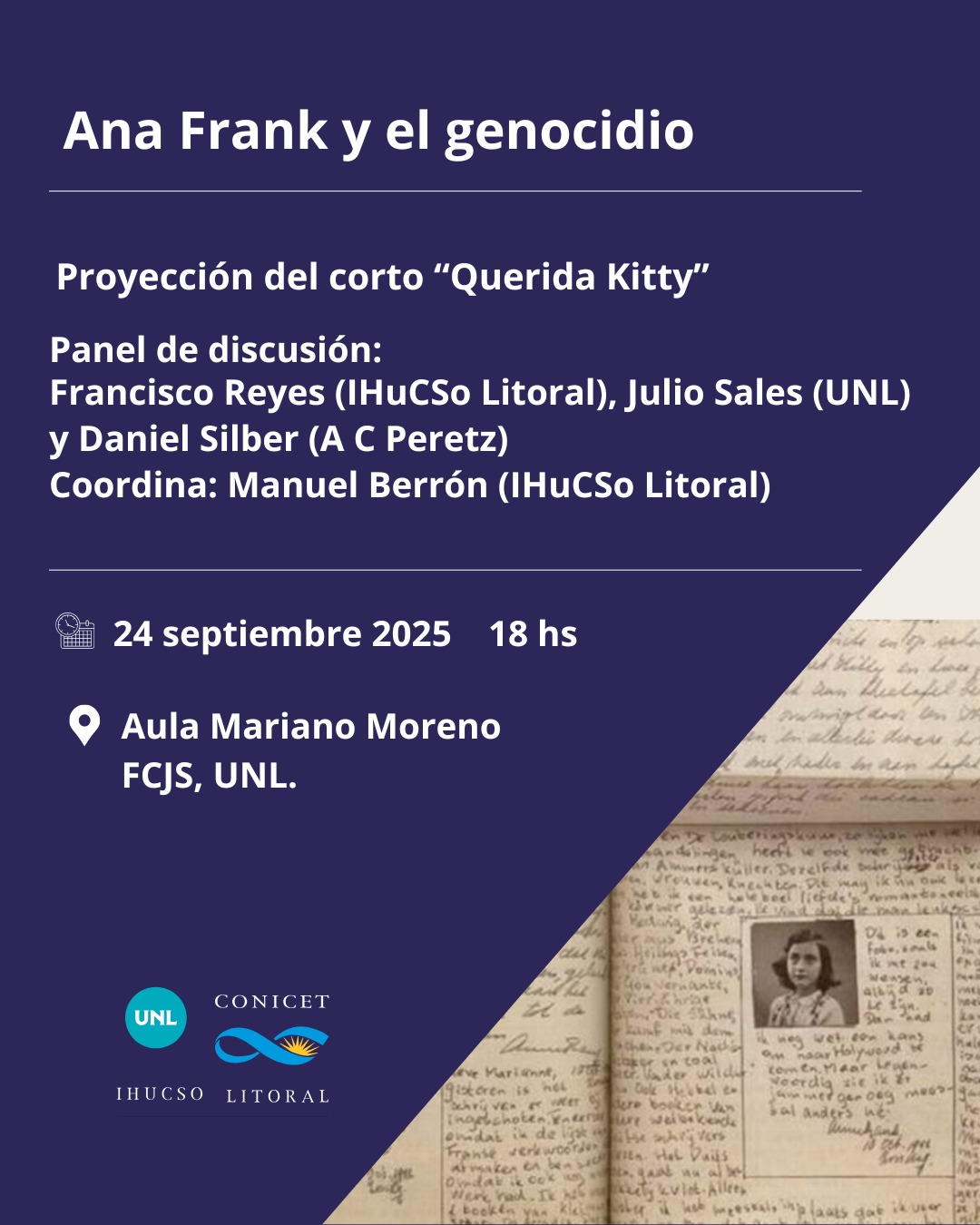 Fecha: miércoles 24 de septiembre, a las 18 hs.