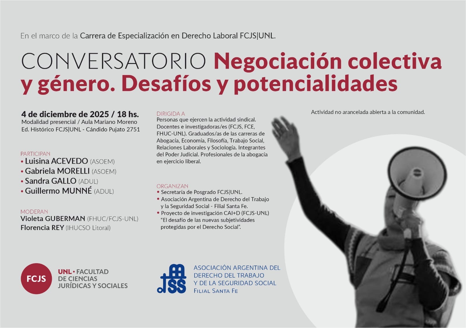Graduados/as de las carreras de Abogacía, Economía, Filosofía, Trabajo Social, Relaciones Laborales y Sociología.