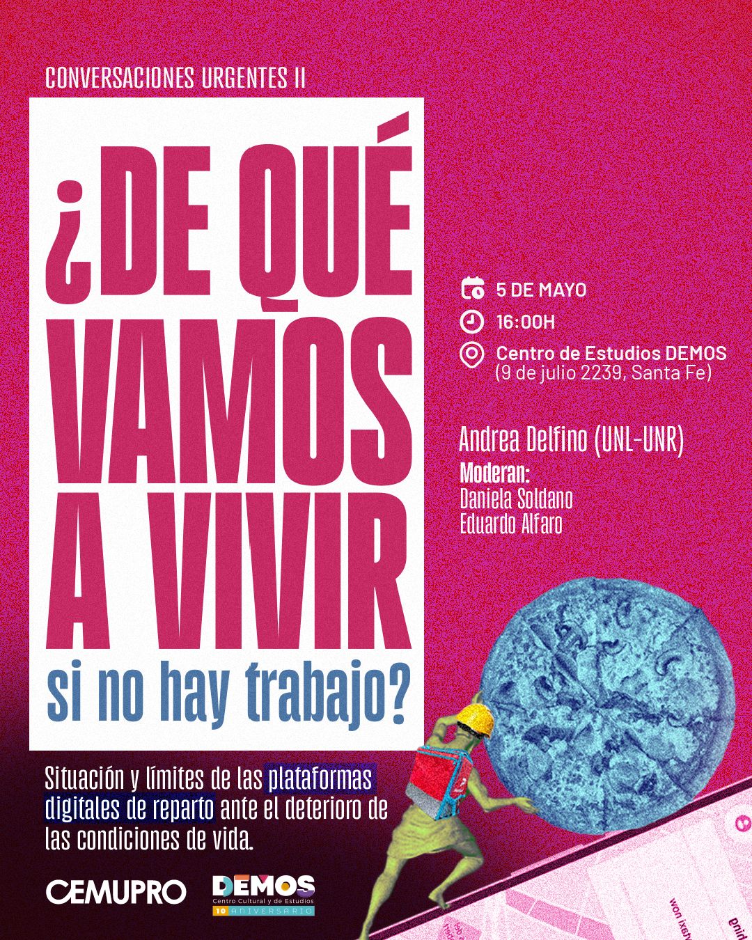 Te invitamos a participar de este conversatorio junto a Andrea Delfino, Dra. En Ciencias Políticas, docente, investigadora, especialista en las transformaciones en el mundo del trabajo, las formas de inserción precarias en el mercado de trabajo y en las transformaciones en la institucionalidad laboral.