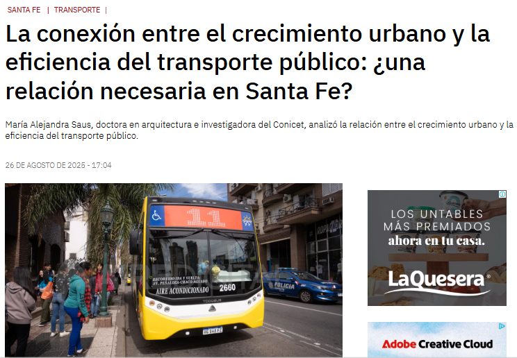 La nota fue publicada el día 26 de agosto y se titula: "La conexión entre el crecimiento urbano y la eficiencia del transporte público: ¿una relación necesaria en Santa Fe?".