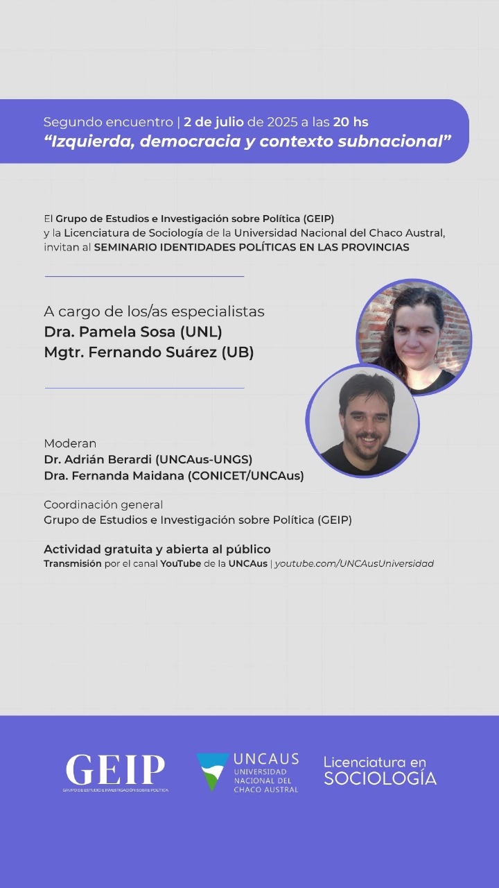 Organiza: Grupo de Estudios e Investigación sobre Política (GEIP), Licenciatura en Sociología - UNCAus.
