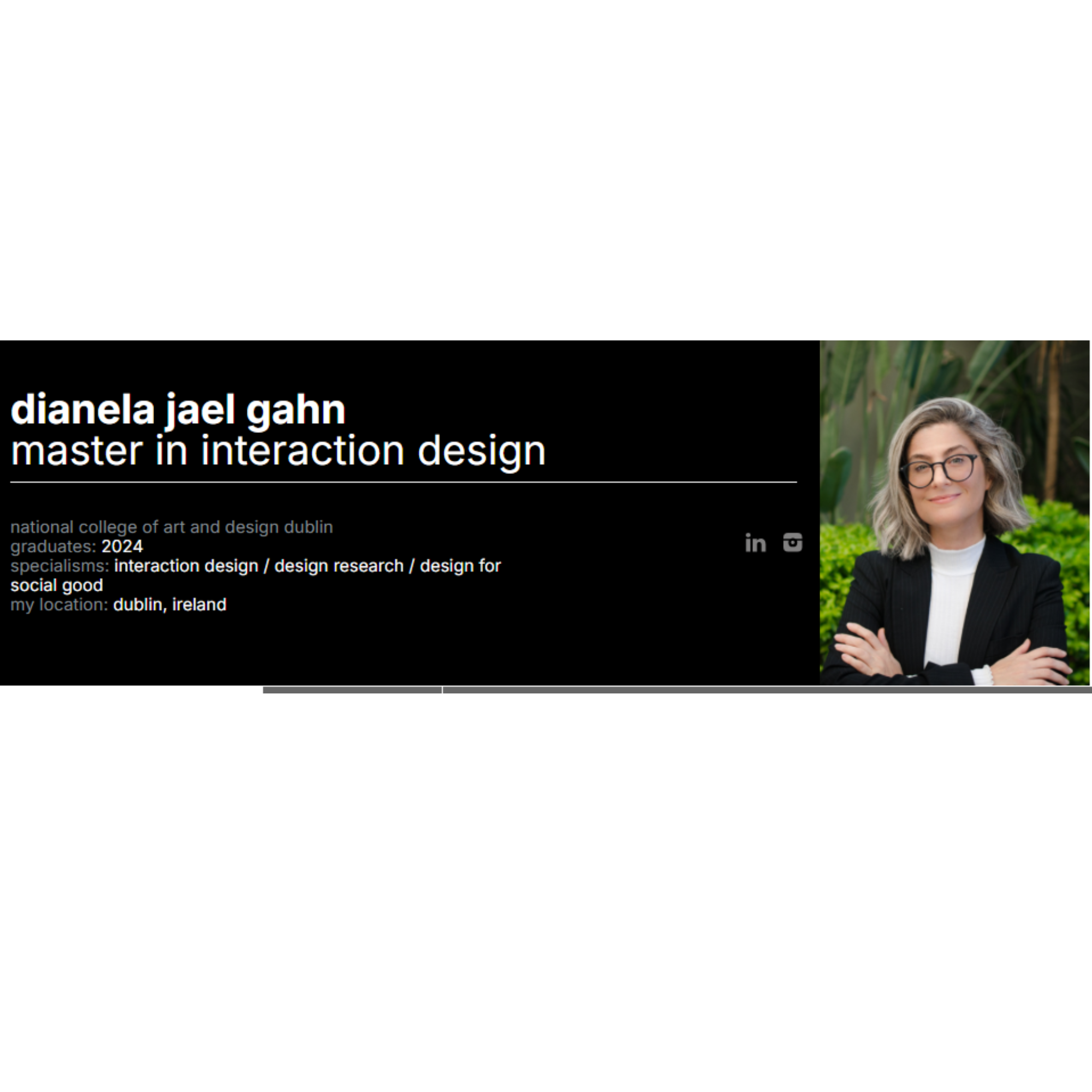 La tesis se titula: "Shaping HerCity: Enhancing Urban Experiences for Women and the LGBTQ+ Community Through Interaction Design in Dublin. Máster en Interaction Design, National College of Art and Design (NCAD)".