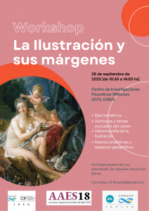 El día viernes 26 de septiembre a las 10.30 hs. en el Centro de Investigaciones Filosóficas (Miñones 2073, CABA), se llevará a cabo el Workshop: “La Ilustración y sus márgenes”.